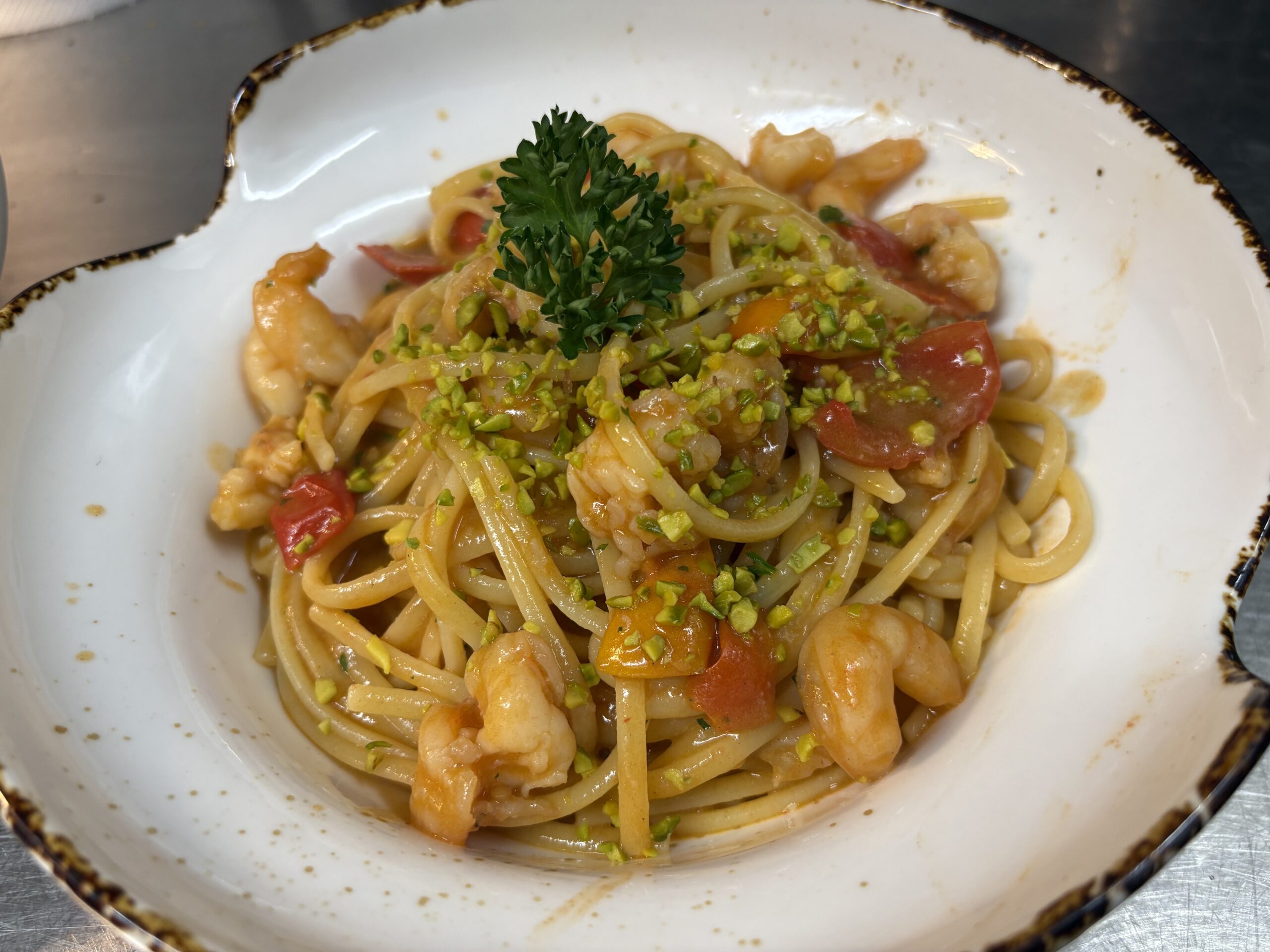 Linguine ai crostacei e granella di pistacchio